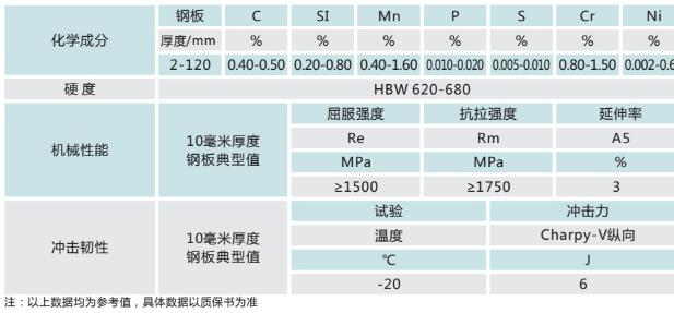 圖(1)KN60耐磨鋼板的各項(xiàng)參數(shù)